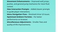 Auto Item Pickup – Items are now collected automatically for smoother gameplay. Movement Enhancements – Improved wall jumps, pushes, and general jump mechanics for more fluid control. New Interact...